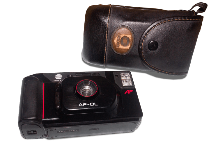 Built in Japan (others were built in Malaysia) and introduced around 1987 the Minolta AF-DL, DL meaning dual lens was the halfway point between fixed lens and zoom lenses on automatic point and shoot film cameras.