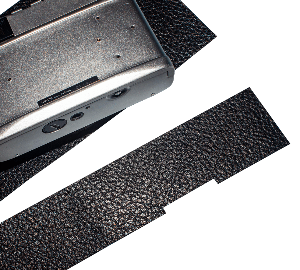 This was done by measuring the width needed and creating a paper template based on the original and double checked by fitting on the camera, this is then reversed and transferred to the back of the new leather cover (which is self adhesive).