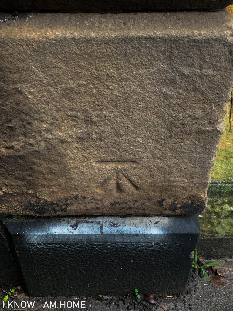 Carved into the sandstone, on a wall facing Windsor Road, is this weathered benchmark. From walking height this was a bit tricky to spot!
