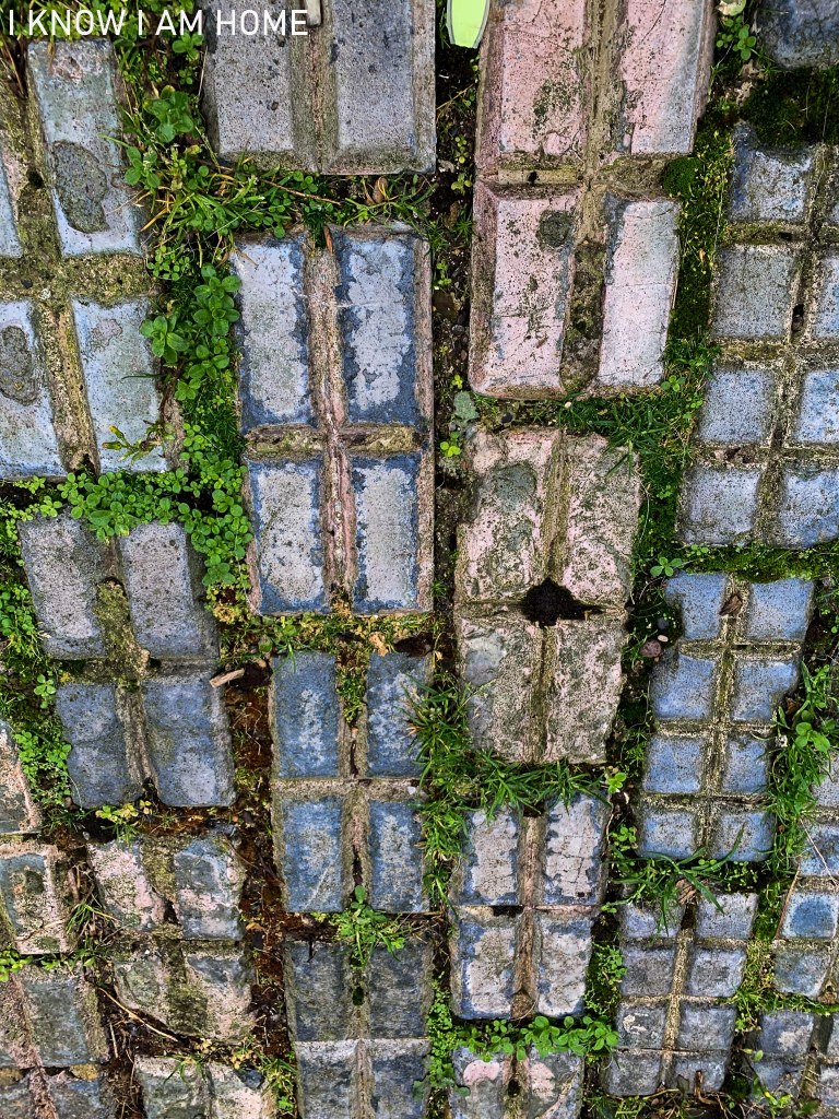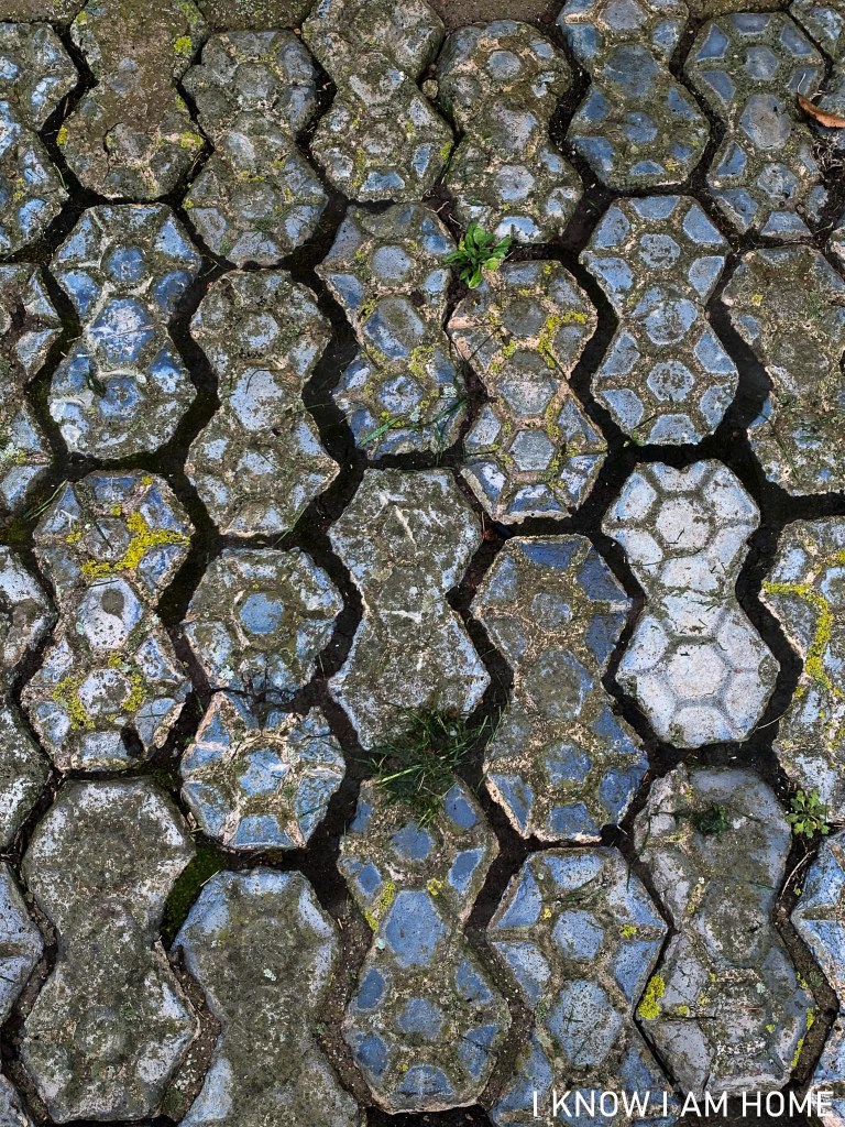 The eight division paving bricks are not without their charms, but lack the art-y quality which I find the double hexagonal interlocking pavers have, a functional beauty.