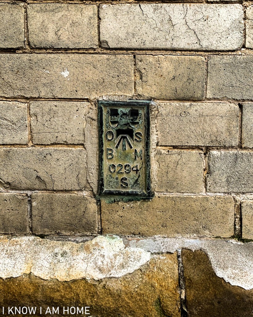 This is a flush bracket (so called as they sit flush with a building or post) OS benchmark, the benchmarks were a means of marking a height above sea level. Surveyors made the marks to record height above Ordnance Datum Newlyn (ODN – mean sea level determined at Newlyn in Cornwall).