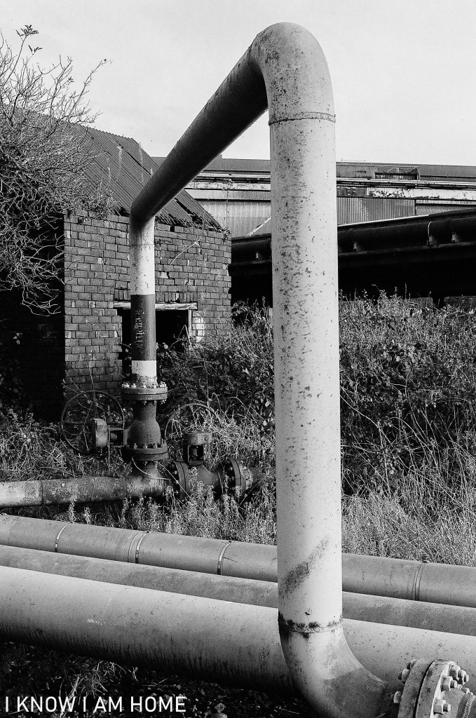 The path snakes toward the railway line, you walk between this and the pipes and the now steadily disappearing and changing land of gone industry.