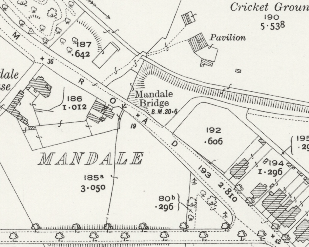 The area indeed is to be found on OS mapping labelled as Mandale Bridge, with also Mandale Mill (a corn mill according to some maps) occupying the area where a white building can be seen in the background (currently a golf club building).