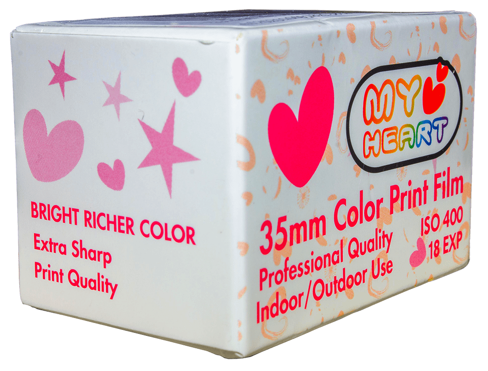 I’ve seen all sorts of film here, including these bizarre “My Heart” films, which are clearly not marketed with photography as the first thought. They appear in equally bizarre plastic canisters – very akin to those which we find the Poundland film in.